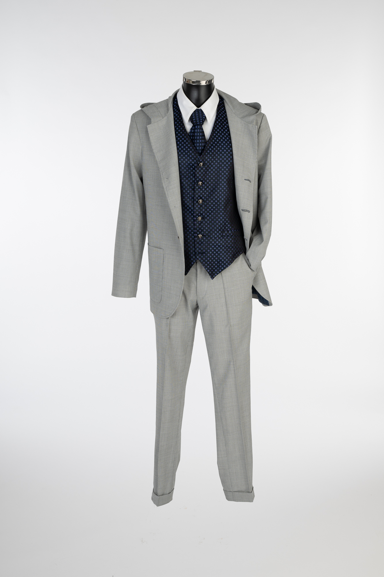 Sommerlicher Anzug aus leichter Schurwolle. Er vereint Komfort, Funktionalität und modernen Stil. Das halbgefütterte Sakko sorgt für atmungsaktiven Tragekomfort an warmen Tagen und erhält durch die Kapuze eine sportlich-lässige Note. Die Hose ist mit praktischen Cargotaschen ausgestattet, die den urbanen, funktionalen Look unterstreichen. Das Ensemble eignet sich ideal für legere Business-Looks, stilbewusste Freizeitoutfits oder Reisen.