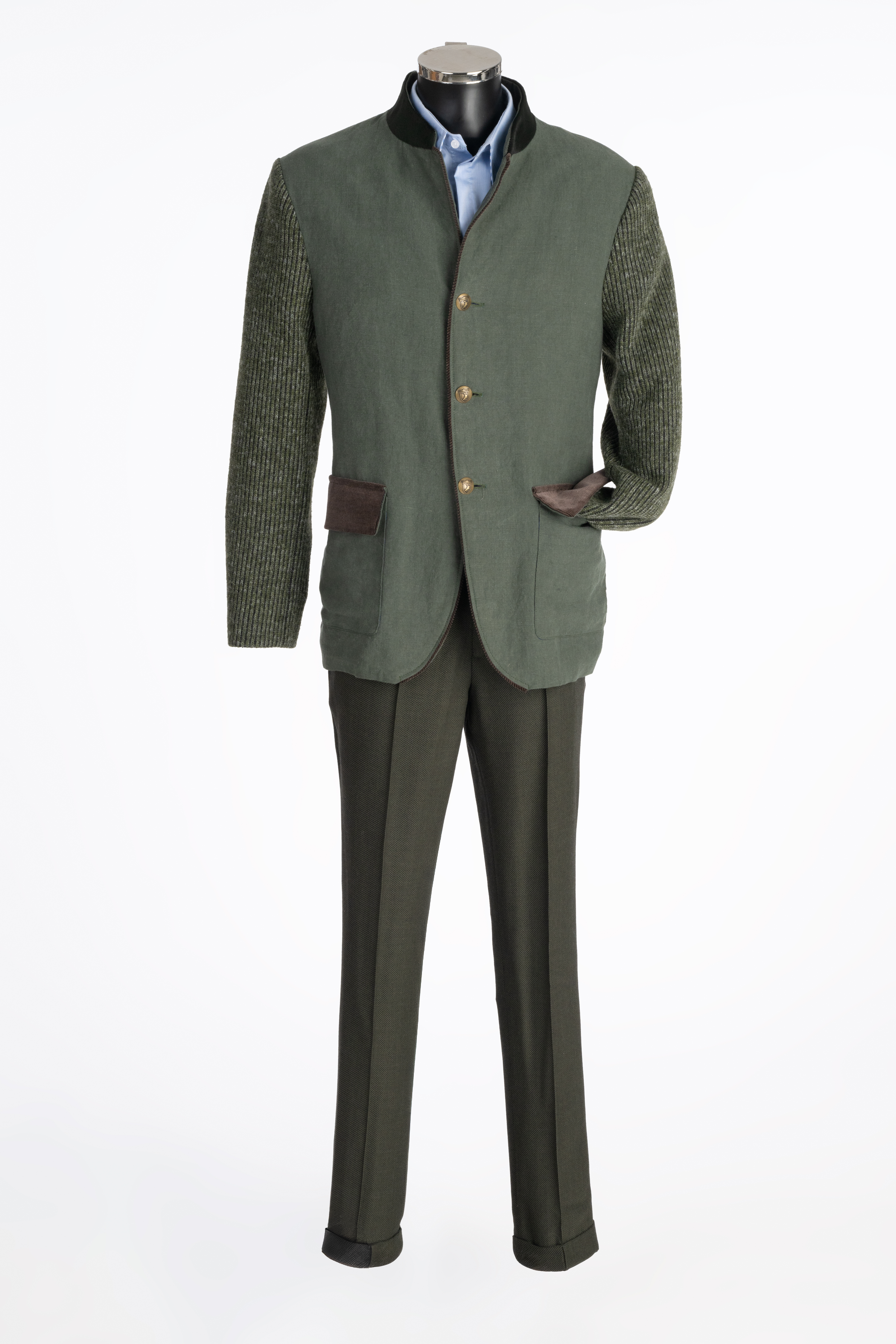 Der Kragen aus Kalbfell setzt ein edles Highlight, während Kanten und Taschen aus leichtem Cord dem Janker eine elegante, handwerkliche Note verleihen. Ideal für Herren, die auch in der Übergangszeit stilvoll und komfortabel gekleidet sein möchten.