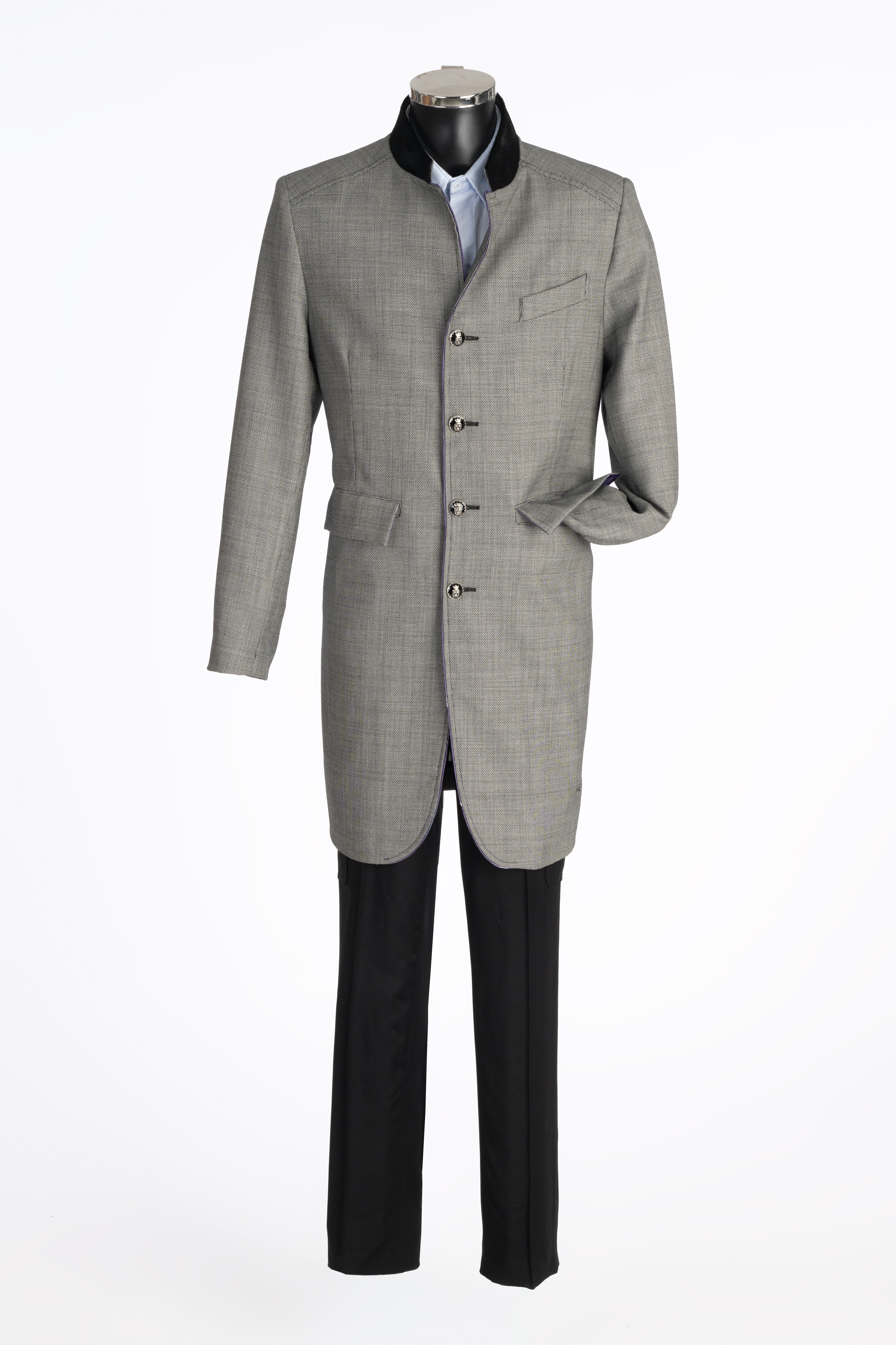 Der Kragen aus Kalbfell setzt einen edlen Akzent und verleiht dem Gehrock eine luxuriöse Note, während der Schnitt zeitlos und elegant bleibt.