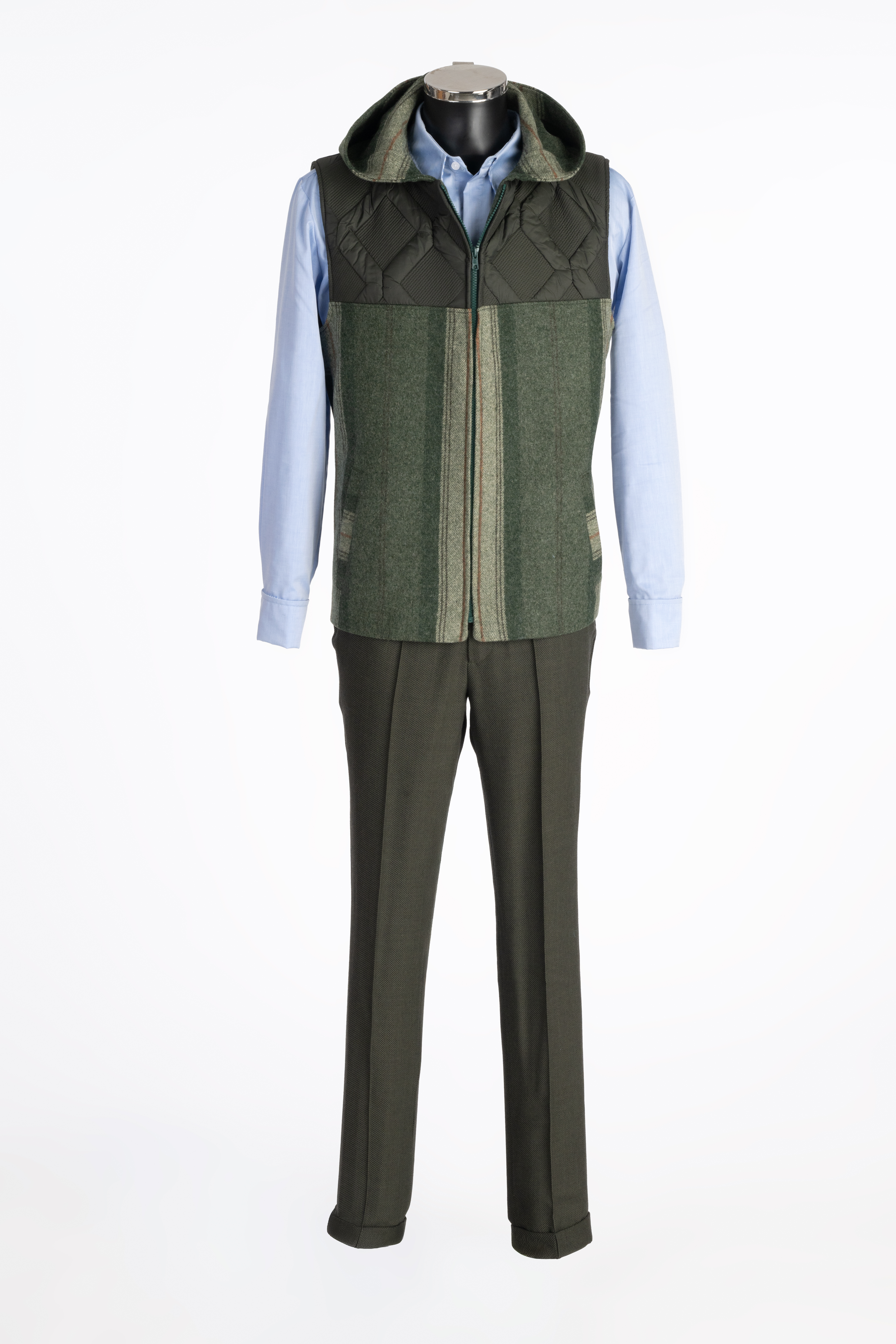 Dazu passend gibt es eine Weste aus Wolle, die mit Kapuze und Reißverschluss ausgestattet ist. Die Weste kann unter dem Stepper getragen werden, sodass man bei jedem Wetter optimal warm bleibt. Die Kombination aus Stepper und Weste ist funktional und gleichzeitig modisch abgestimmt.