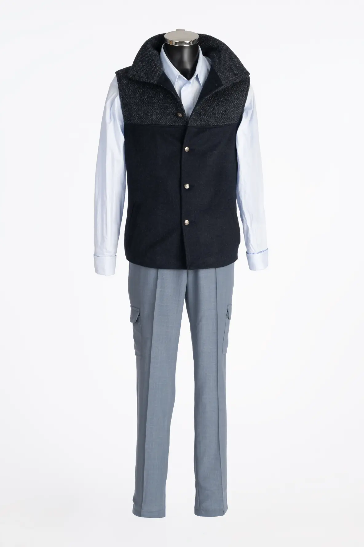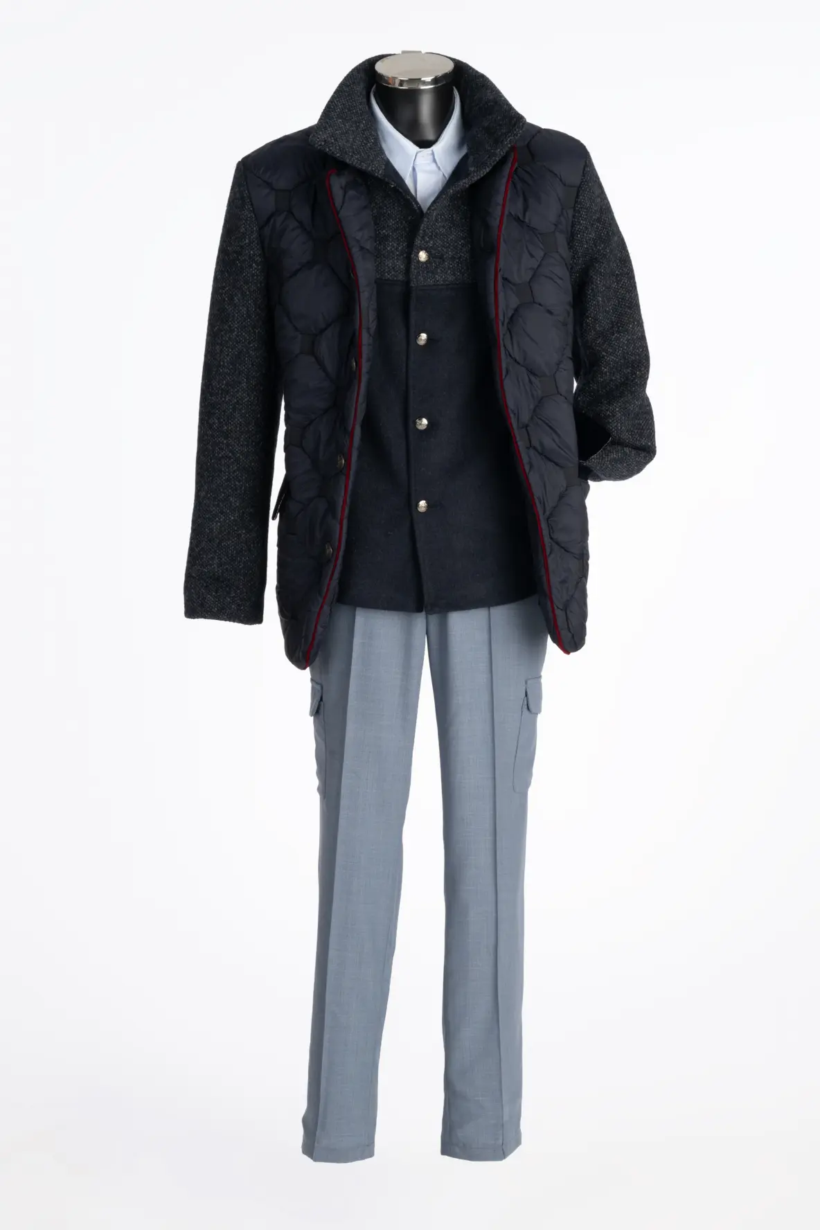 Darunter ergänzt eine passende Weste aus Kaschmir+Strick den Stepper ideal. Sie sorgt dafür, dass man bei jedem Wetter warm bleibt, und fügt sich harmonisch in das Design ein. Die Kombination aus Stepper und Weste ist nicht nur funktional, sondern auch modisch perfekt abgestimmt.