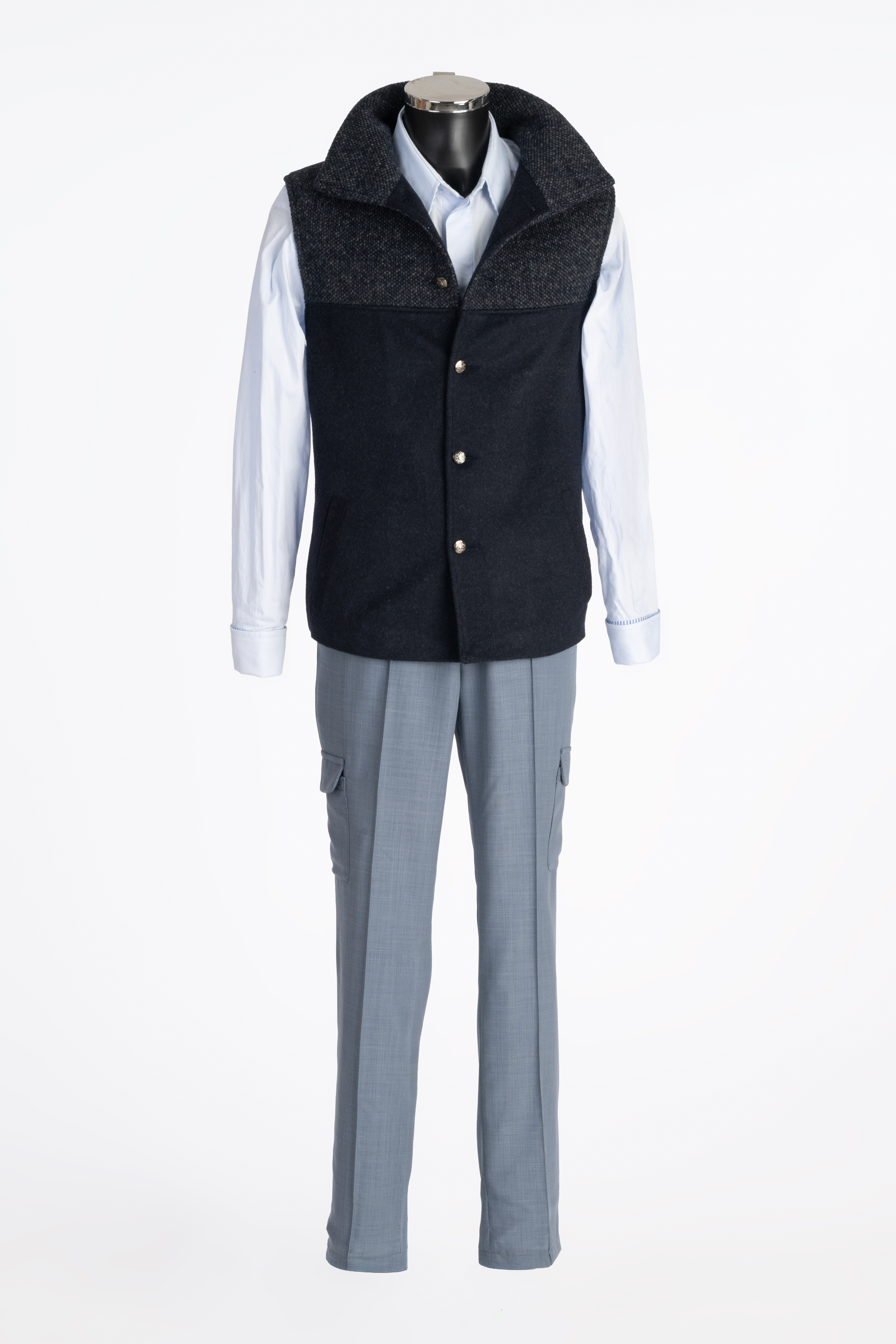 Darunter ergänzt eine passende Weste aus Kaschmir+Strick den Stepper ideal. Sie sorgt dafür, dass man bei jedem Wetter warm bleibt, und fügt sich harmonisch in das Design ein. Die Kombination aus Stepper und Weste ist nicht nur funktional, sondern auch modisch perfekt abgestimmt.